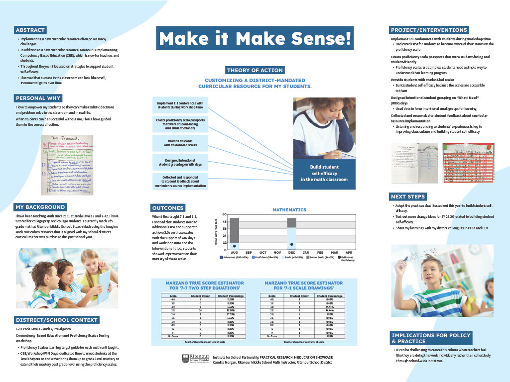 The first showcase, held in Spring 2023, was an opportunity for teachers, administrators and math coaches from Mehlville, Maplewood Richmond Heights and Ritenour school districts to share what they learned by participating in the STEMpact District Immersion (DI) program, a three-year, deep exploration into the most impactful ways to implement equitable math instruction. STEM DI participants were joined by those from Julia Goldstein Early Childhood Education Center in University City for a showcase focused on math improvement. They shared short presentations and posters on a full gamut of research and work they had completed with support from ISP instructional specialists.